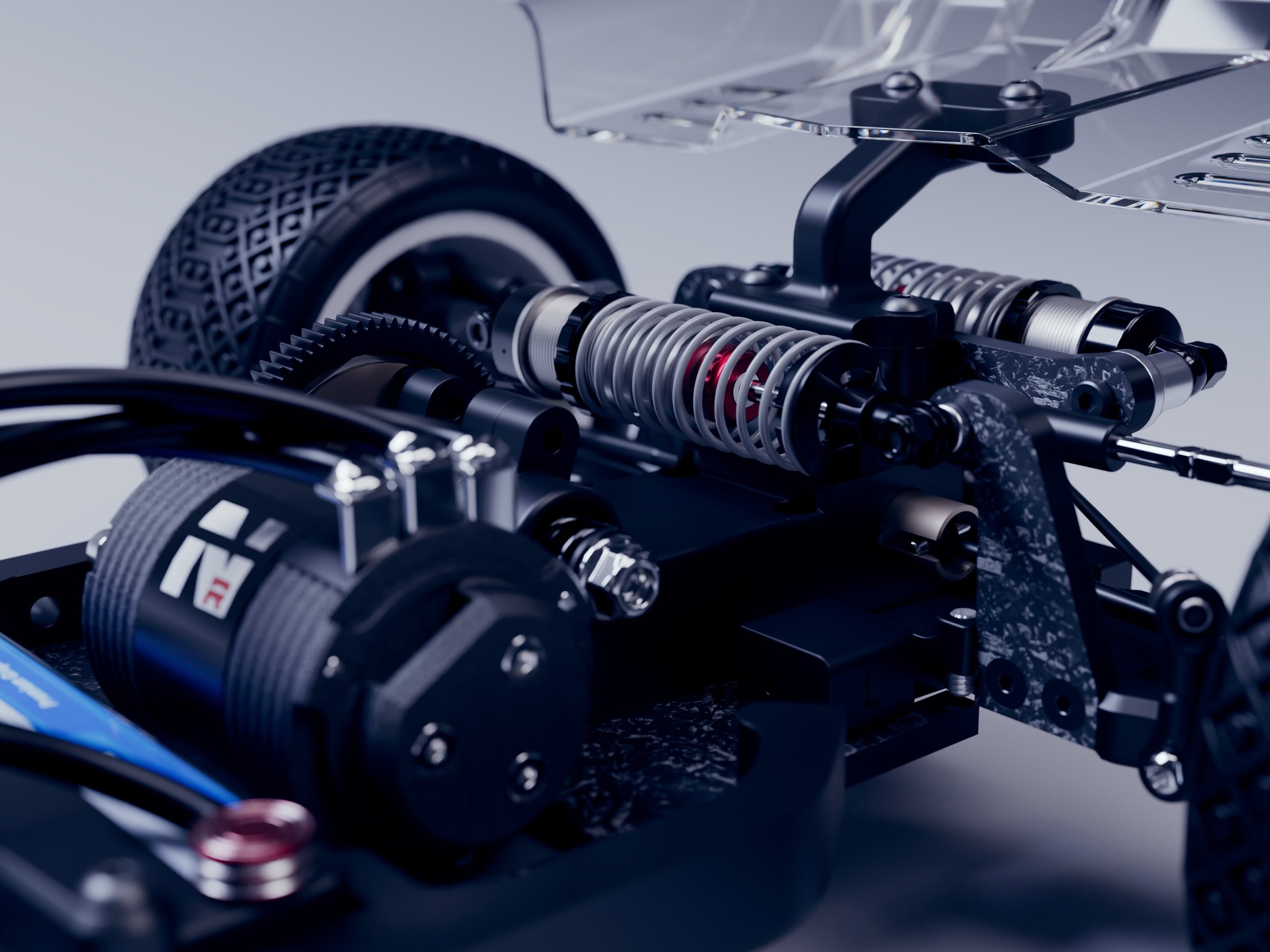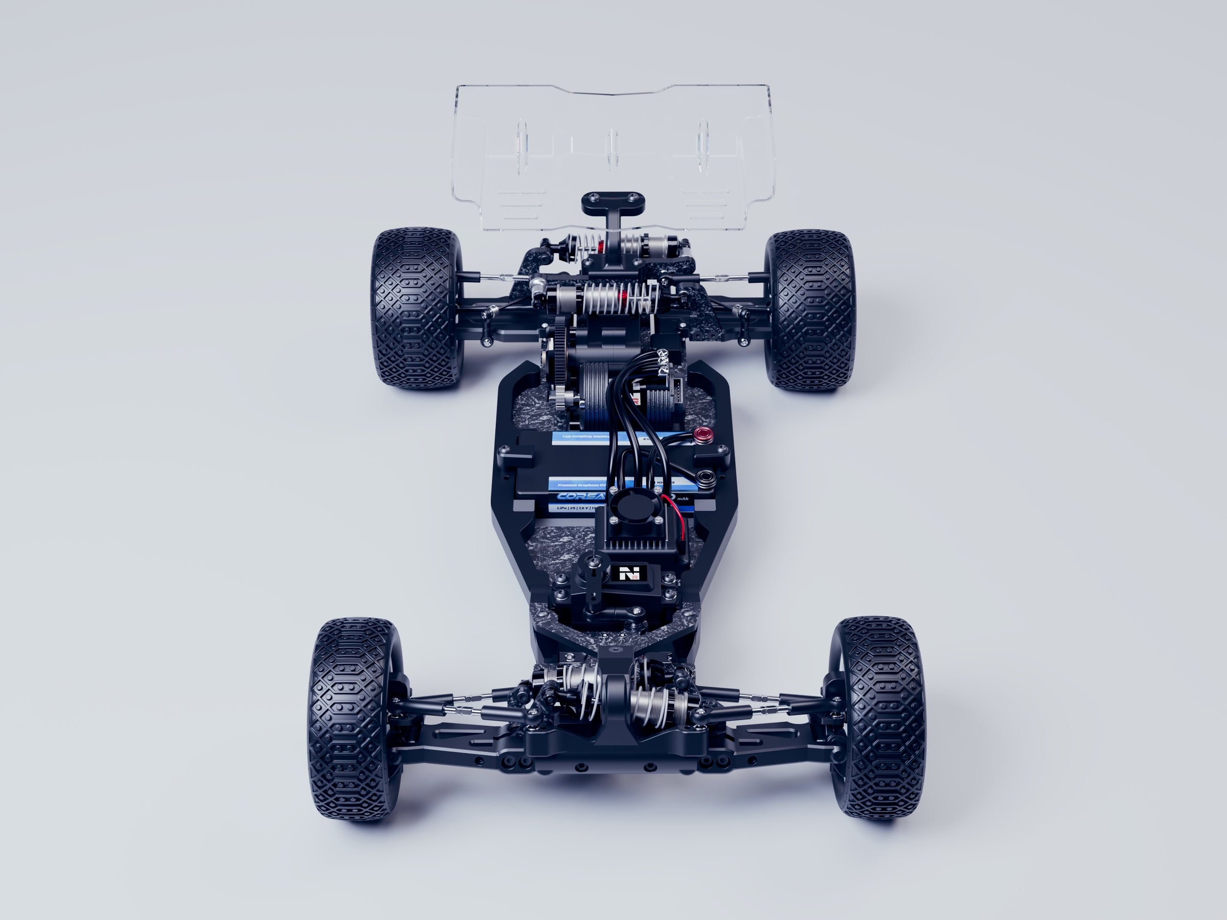 INTRODUCING THE AGAMA N110 1/10th 2wd off-road competition buggy. After years of design and development, including building on the worldwide success of its bigger brother - the Agama N1 1/8th platform - our revolutionary design is finally realised in the 1/10th market. Once again, its unique suspension creates an incredibly low COG (Centre of Gravity) race car, while our engineering teams experience has pushed us to ensure that not only is it fast, but it’s the easiest car to work on in its class, just like its big brother. Lower COG makes the N110 more consistent to drive while being able to hold higher corner speeds. Gliding effortlessly through bumps it stays very flat with less tendency to want to flip over, and in the air, the unique clean aerodynamics have a tremendous effect, working the rear wing to maximum efficiency.