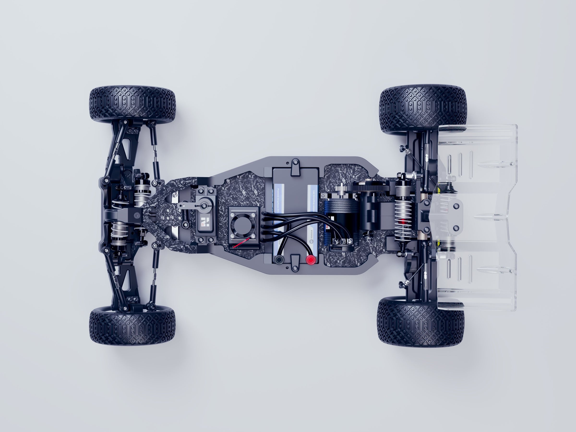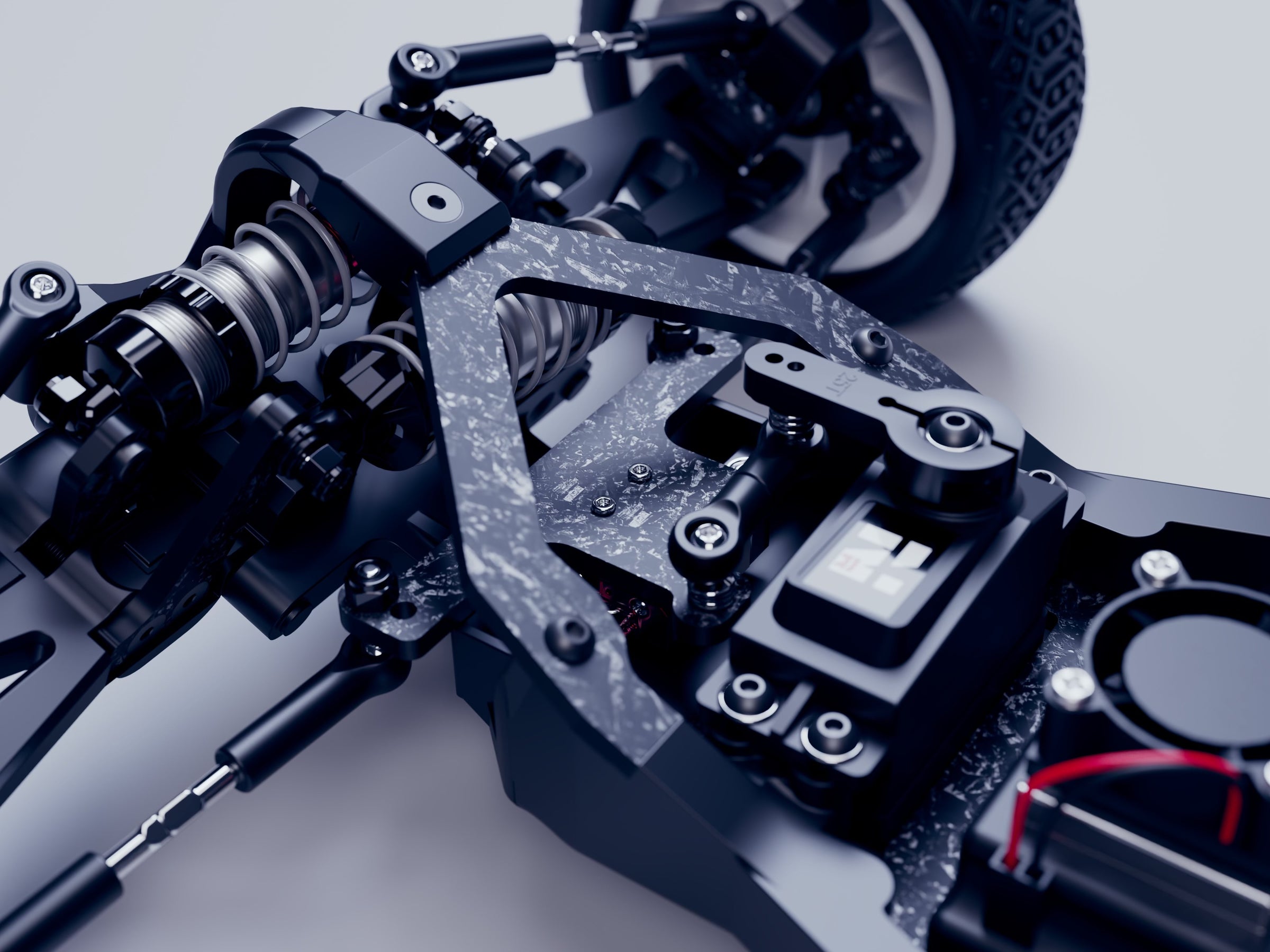 • Forged carbon chassis plate