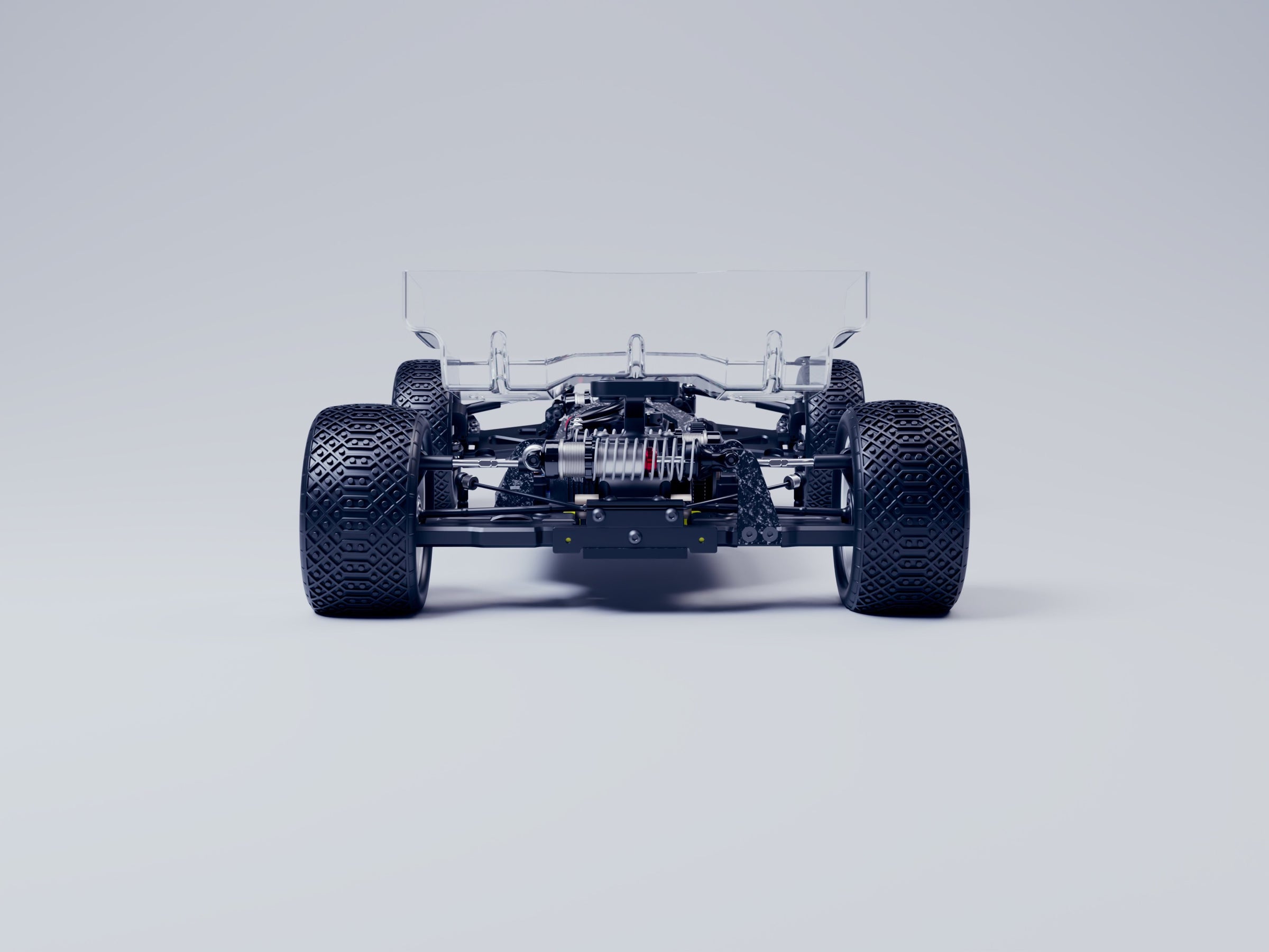 The innovative lay-down shock design and carefully positioned shock levers not only give you an incredibly consistent and free shock stroke with no side loading, but it also massively reduces the centre of gravity of the buggy, this means you can push harder on the track without the buggy getting unsettled by any bumps and ruts while maintaining a higher corner speed! Magic.